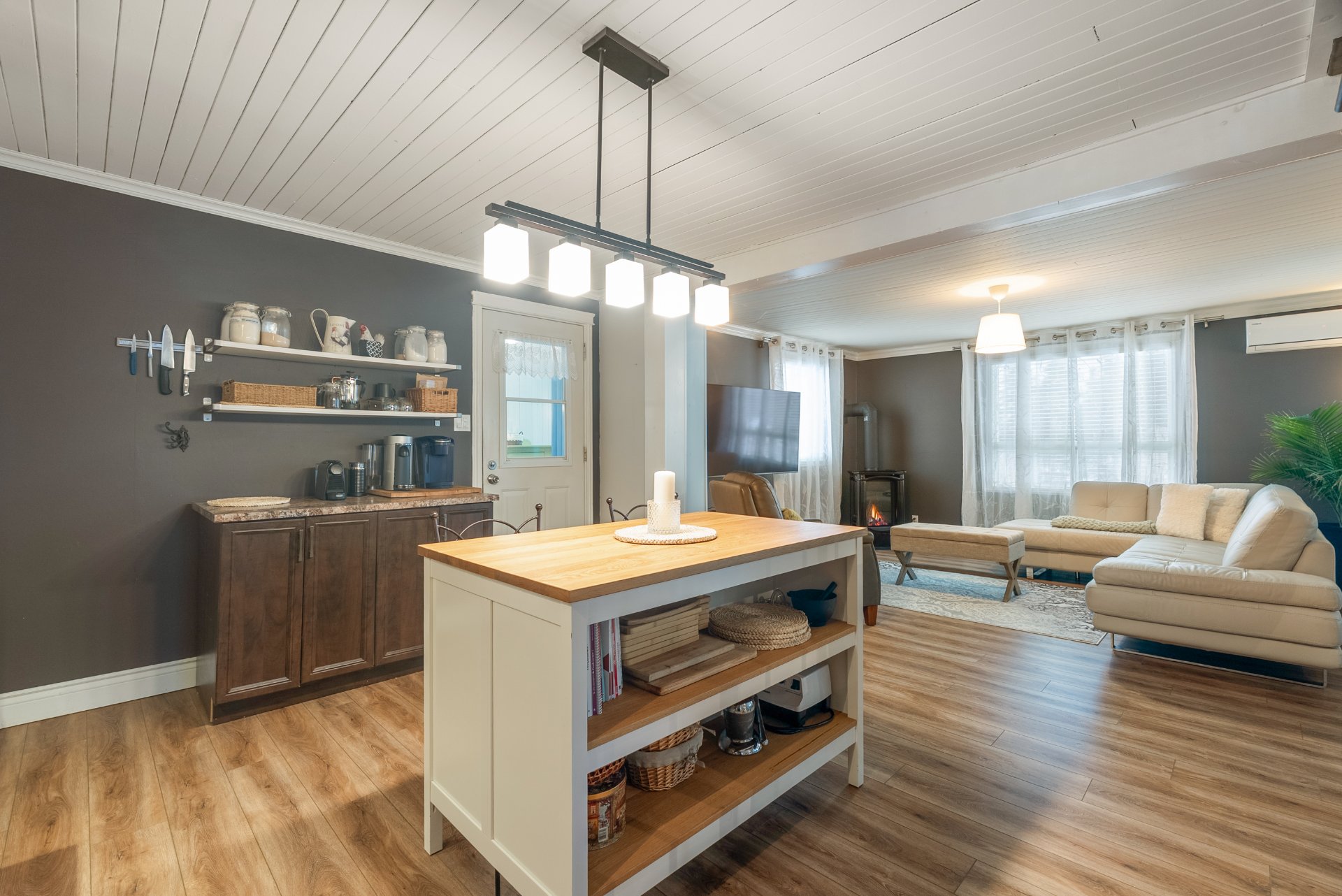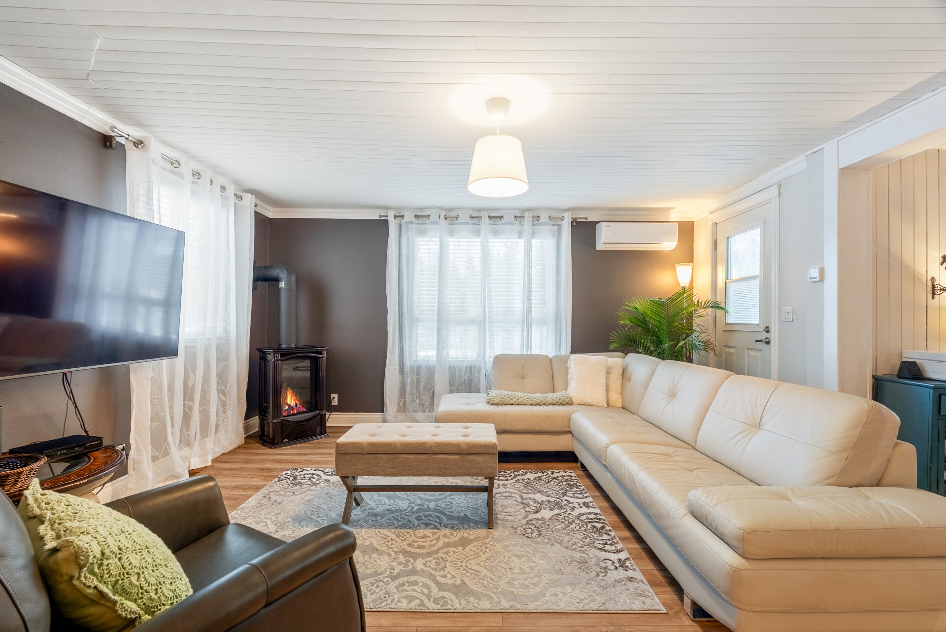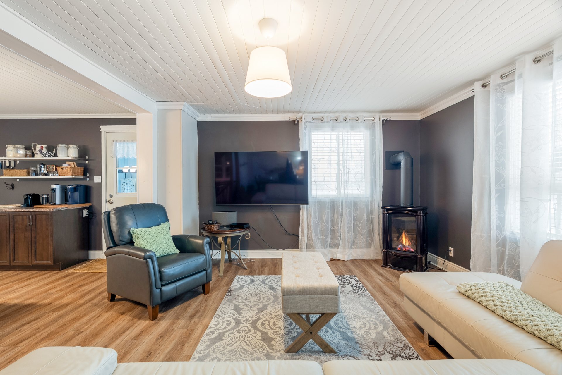 | Inclus | Foyer au Gaz Napoleon au salon du RDC, Cuisinière au bois de la verrière, toutes les toiles et stores sur mesure, poules et accessoires, ouvre porte électrique du garage, deux gazebos en bois traité, serre et bacs de jardinage |