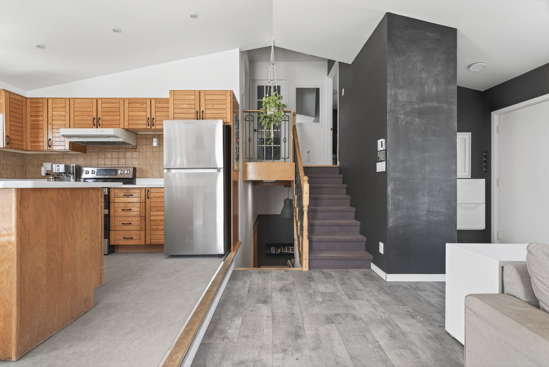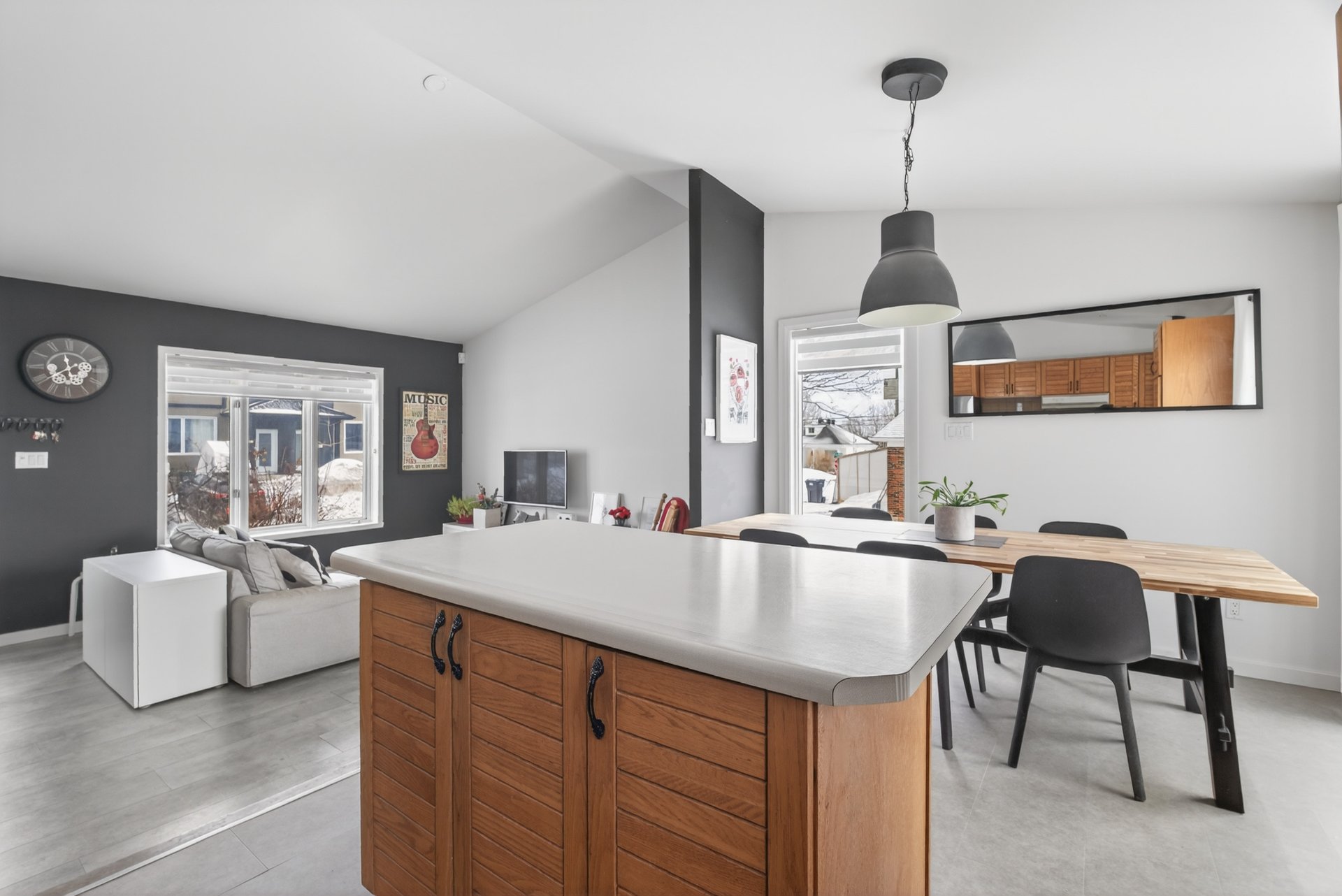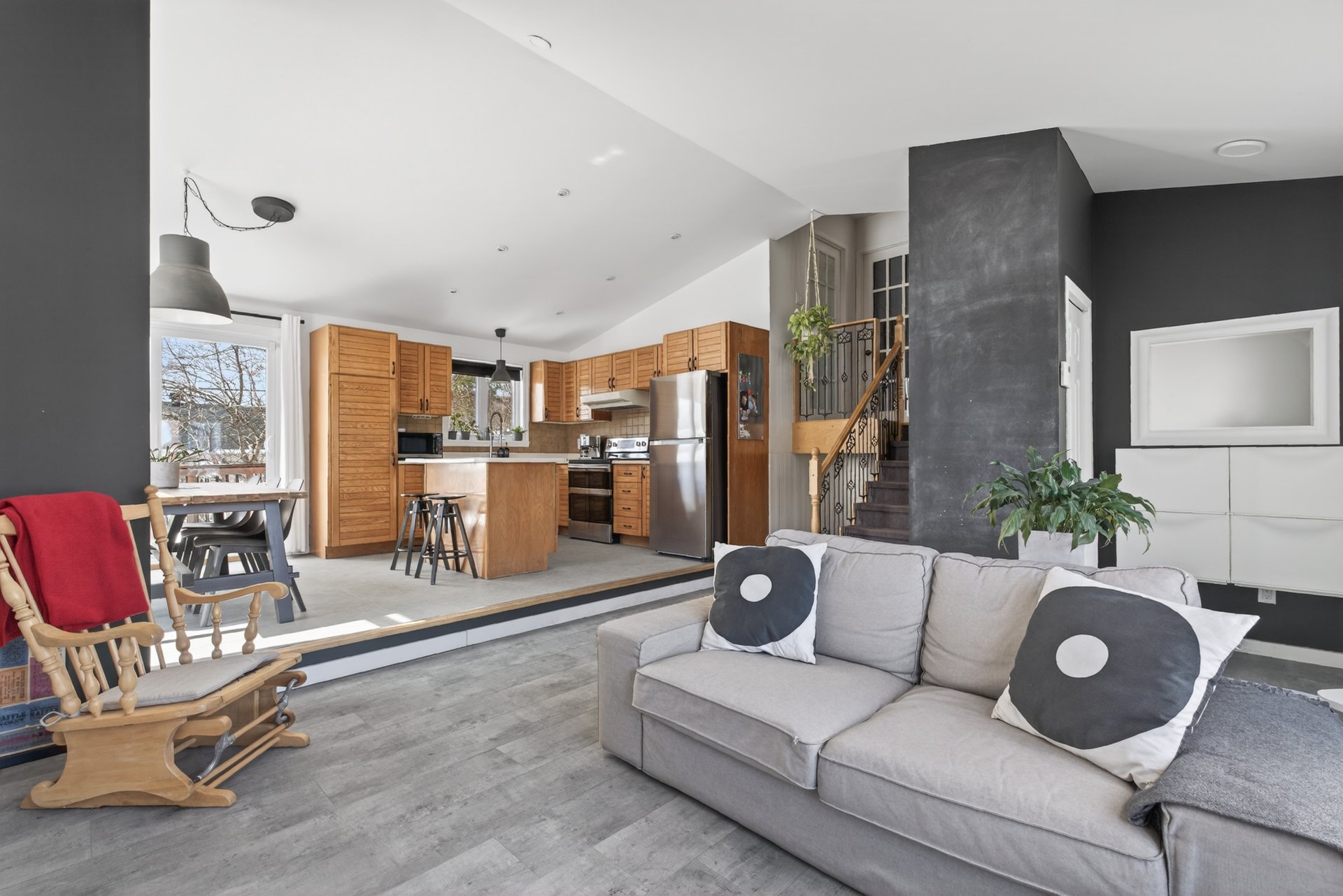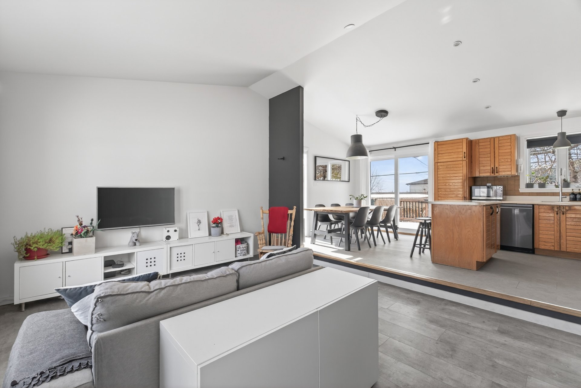 vers une aire de vie ouverte baignée de lumière naturelle.