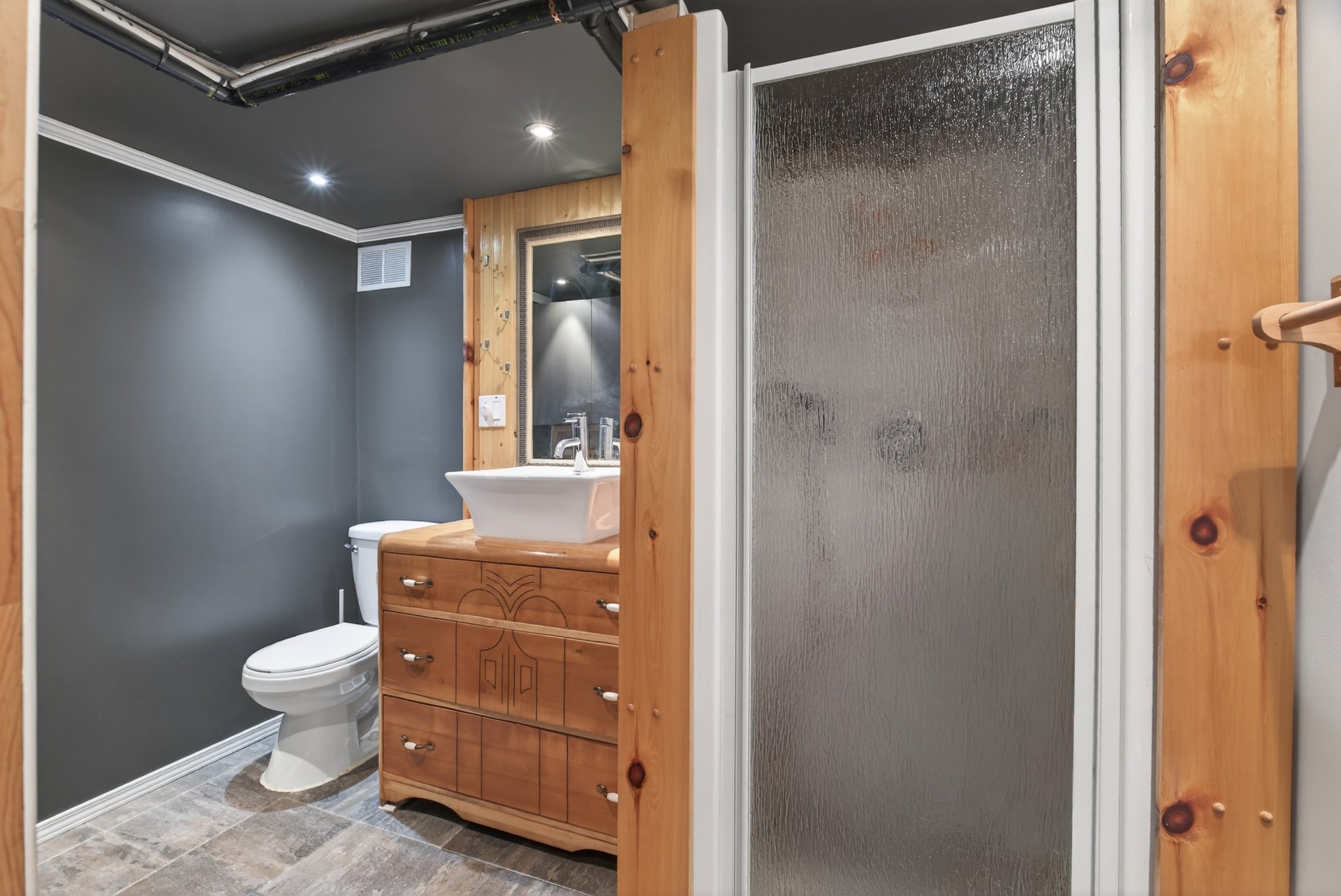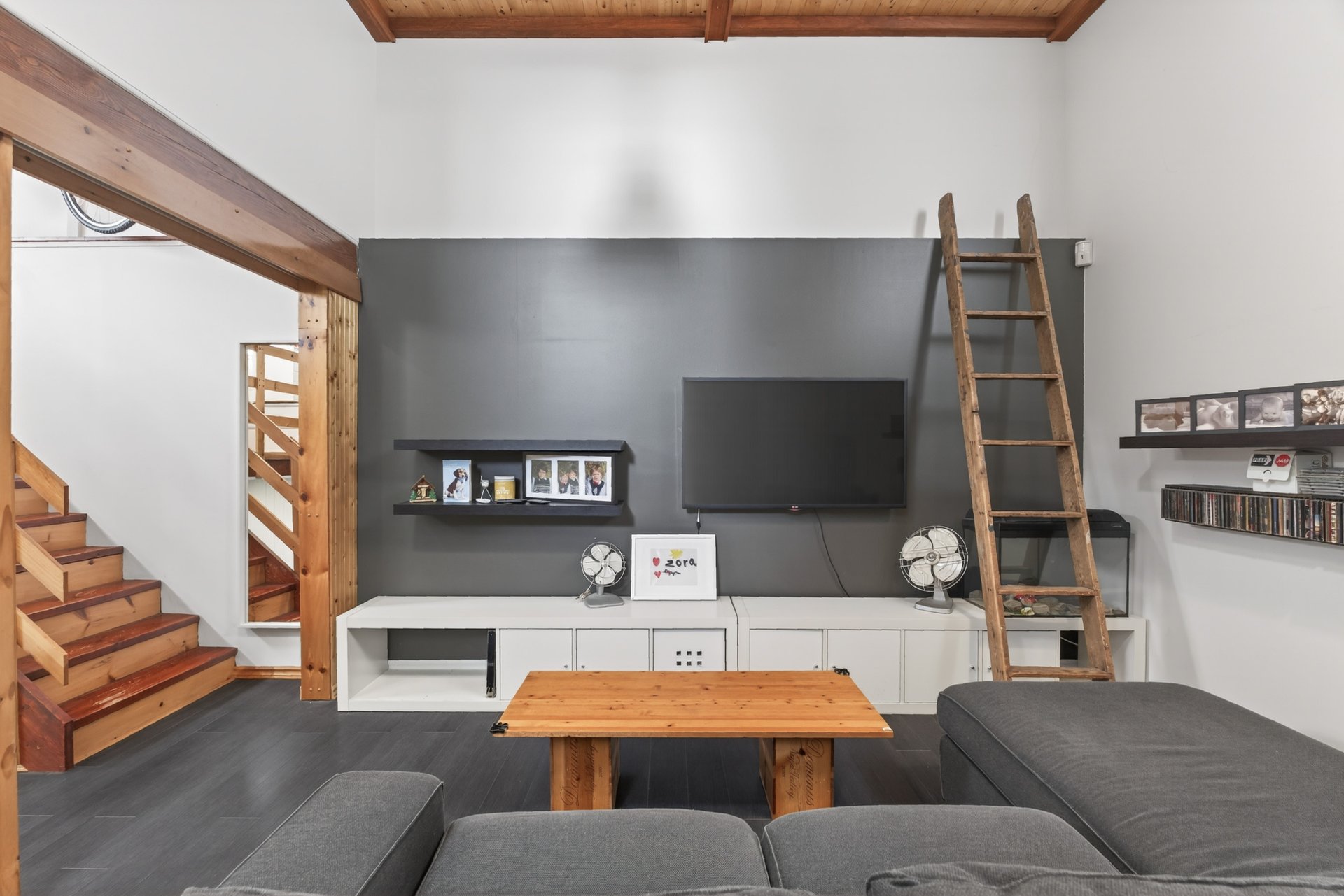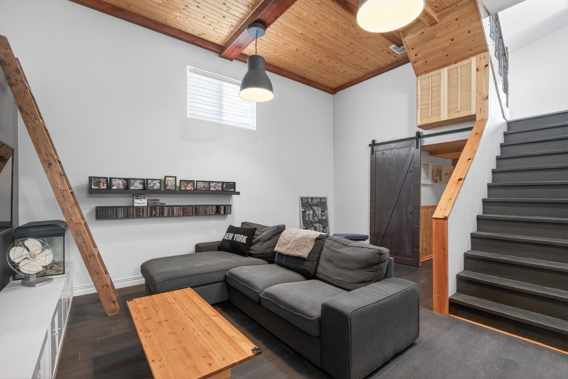 - Les hauts plafonds au sous-sol créent une impression de