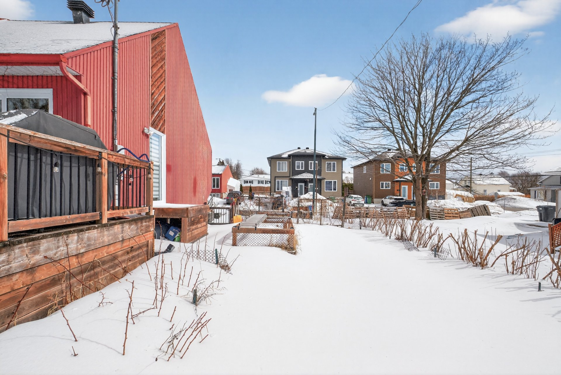 matures et aménagée d'une grande terrasse en bois, d'un